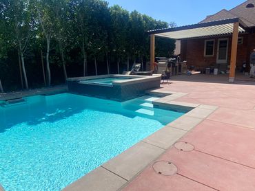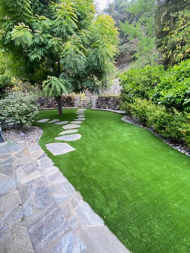 Infinity pool side landscaping with walk path installation
